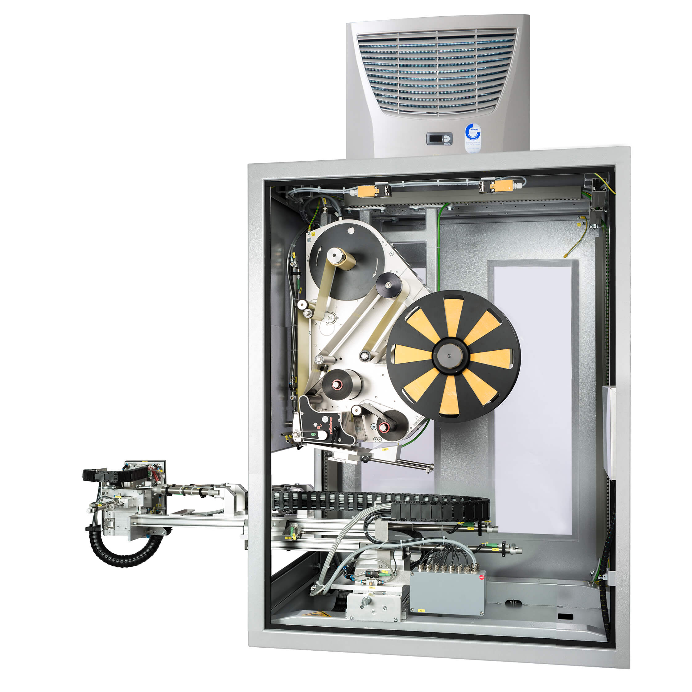 Nasze systemy etykietowania są dostępne w wersji z regulacją wysokości lub pozycji bocznej, co umożliwia precyzyjne dopasowanie etykiety. Ustawienia można zmieniać manualnie lub automatycznie, co jest niezwykle praktyczne przy znakowaniu produktów i palet o różnych wysokościach. Możliwość dostosowania budowy maszyny do swoich potrzeb, wyposażając ją w system chłodzenia lub ogrzewania, aby kleje zachowały swoją siłę przyczepności.
